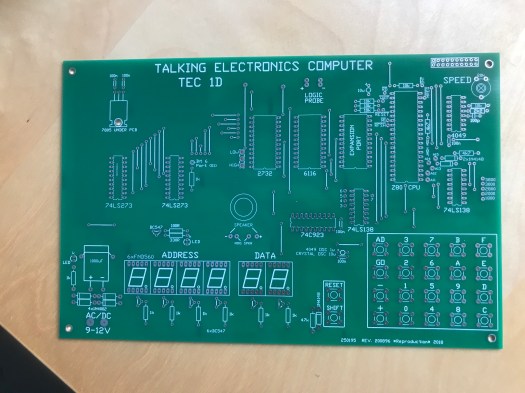 Over Christmas while randomly scrolling through my Twitter feed I saw some discussion about the TEC-1 computer. This is a single-board kit dating from the early80s based around the Z80. Instructions on how to build it were published in the computer Australian hobbyist electronics magazine Talking Electronics. The Magazine only ran for 15 issues which is a pity as it had the idea of giving away a blank PCBs for one of the projects featured with every issue and did not have any advertising!