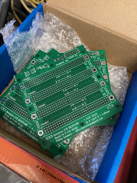 In parallel with coding I sourced a simple backplane, initially I tried to use a VME backplane but there was no easy way to sort out the functionality clashes between to the 2 buses. Again hunting around the internet I found a retro Z80 computer group in the US with lots of useful stuff and most importantly Gerbers for a simple 4 way backplane, another problem solved.