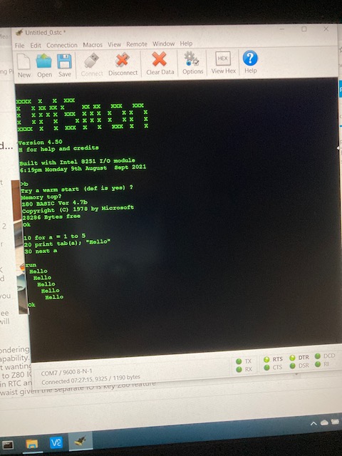 To get BASIC working I needed to make few modifications to my monitor program to provide the hooks for terminal calls used by BASIC. It was a pleasant surprise that all this worked first time so I was back using NASCOM basic for the first time since around 1990 when I last turned on my NASCOM 2.